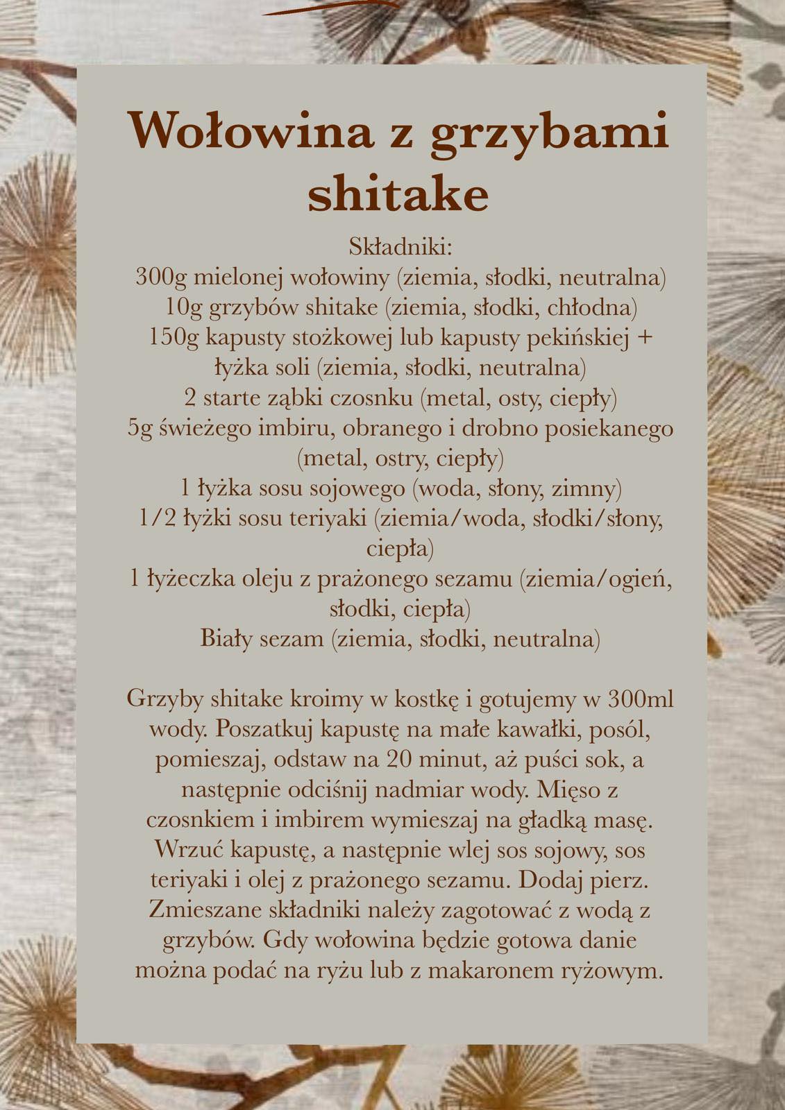 Przykładem dania o takim charakterze będzie wołowina z grzybami shitake, którą przygotowywaliśmy podczas I modułu kursu.